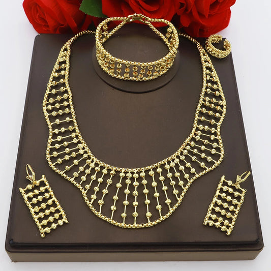 Women Necklace Set Gold Plated Jewelry Choker Luxury Colorful Rhinestone Rings Earrings Bracelet Wedding Jewellery