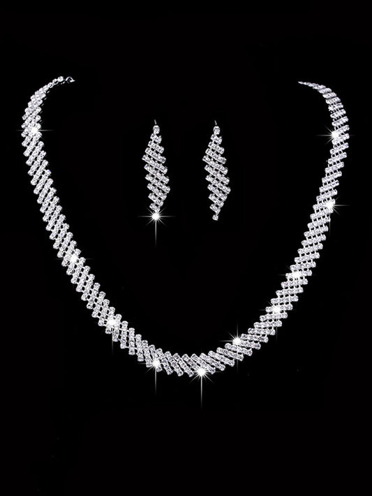 4 Bridal Jewelry Set Rhinestone Necklace Earrings Bracelet Women's Accessories