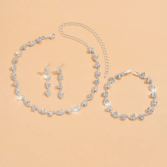 New Fashion Wedding Jewelry Sets Crystal Decoration Choker Necklace Earrings Bracelet Sets Shining Bridal Jewelry Set