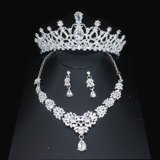 Bridal Wedding Jewelry 4-piece Set, Alloy Crystal Crown&Crystal Necklace&Earrings Women's Classic Wedding Tiaras
